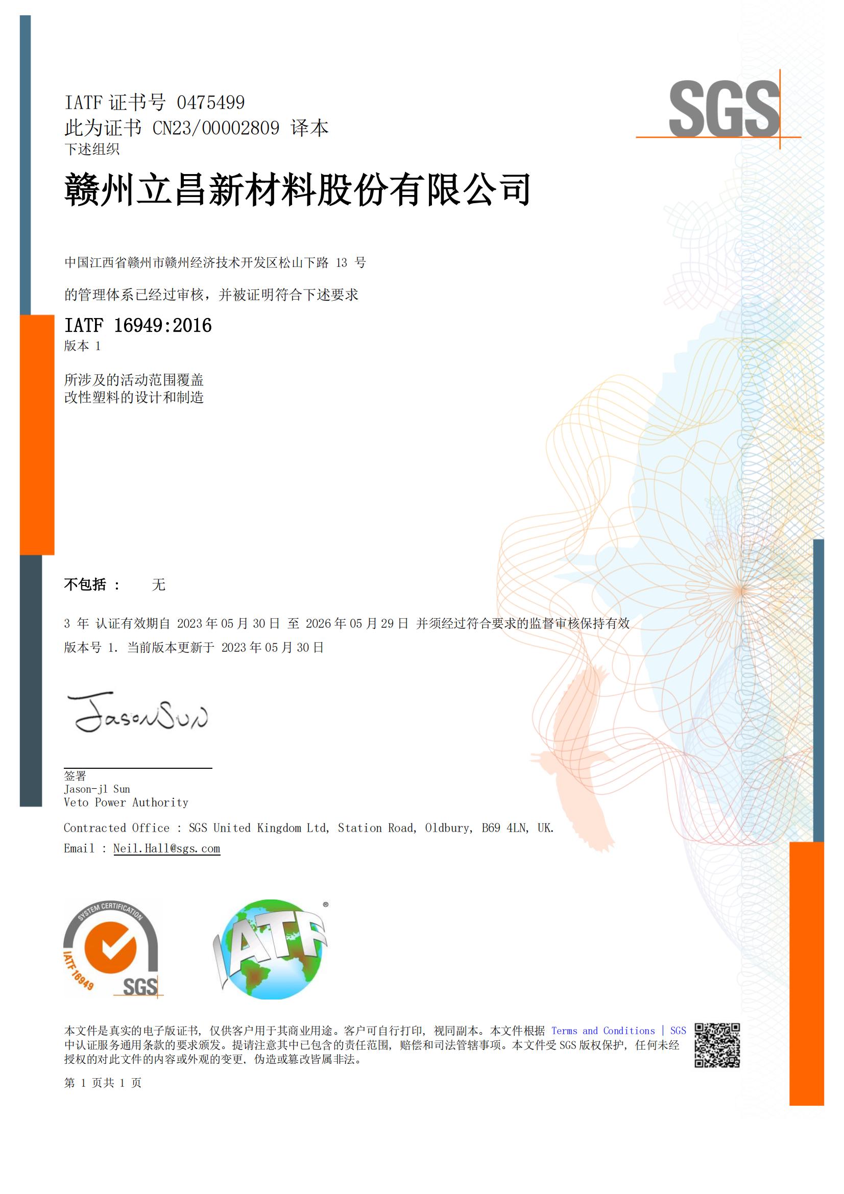 贛州立昌新材料股份有限公司 地址:江西省贛州市經(jīng)濟(jì)技術(shù)開發(fā)區(qū)松山下路13號(hào)